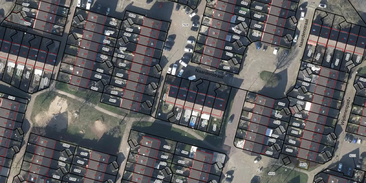 Naardenstraat 21 is gelegen op kadastraal perceel AHM03AC8369. Deze kadastrale aanduiding is uniek en wordt gebruikt door het Kadaster om eigendomsrechten en andere zakelijke rechten vast te leggen. Het perceel maakt onderdeel uit van de kadastrale gemeente Arnhem.