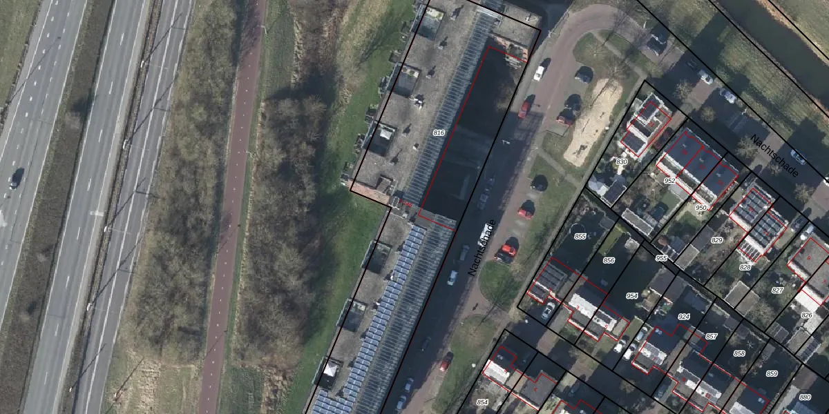 Het perceel waarop Nachtschade 104 staat heeft een oppervlakte van 2545 m². Dit is een zeer groot perceel. De perceeloppervlakte wordt geregistreerd door het Kadaster. Gedetailleerde informatie over de maten van dit perceel kunt u vinden in het rapport Kadastrale kaart met maatvoering van Nachtschade 104.
