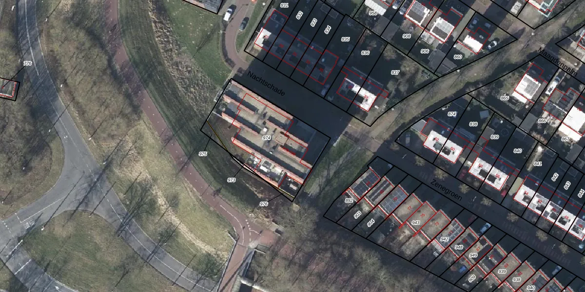 Het perceel waarop Nachtschade 174 staat heeft een oppervlakte van 880 m². Dit is een groot perceel. De perceeloppervlakte wordt geregistreerd door het Kadaster. Gedetailleerde informatie over de maten van dit perceel kunt u vinden in het rapport Kadastrale kaart met maatvoering van Nachtschade 174.