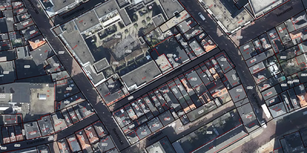 Het perceel waarop Nieuwstad 19 staat heeft een oppervlakte van 3370 m². Dit is een zeer groot perceel. De perceeloppervlakte wordt geregistreerd door het Kadaster. Gedetailleerde informatie over de maten van dit perceel kunt u vinden in het rapport Kadastrale kaart met maatvoering van Nieuwstad 19.