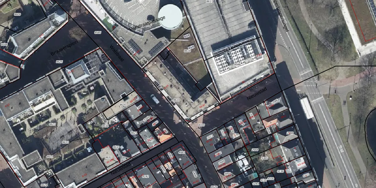 Het perceel waarop Nieuwstad 63 staat heeft een oppervlakte van 708 m². Dit is een groot perceel. De perceeloppervlakte wordt geregistreerd door het Kadaster. Gedetailleerde informatie over de maten van dit perceel kunt u vinden in het rapport Kadastrale kaart met maatvoering van Nieuwstad 63.