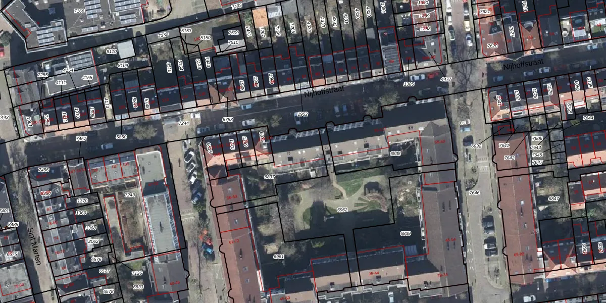 Het perceel waarop Nijhoffstraat 115 staat heeft een oppervlakte van 505 m². Dit is een groot perceel. De perceeloppervlakte wordt geregistreerd door het Kadaster. Gedetailleerde informatie over de maten van dit perceel kunt u vinden in het rapport Kadastrale kaart met maatvoering van Nijhoffstraat 115.