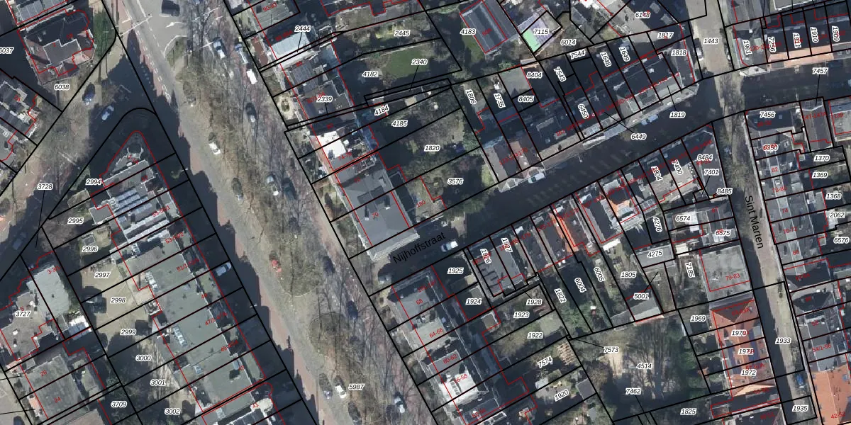 Het perceel waarop Nijhoffstraat 180 staat heeft een oppervlakte van 388 m². Dit is een groot perceel. De perceeloppervlakte wordt geregistreerd door het Kadaster. Gedetailleerde informatie over de maten van dit perceel kunt u vinden in het rapport Kadastrale kaart met maatvoering van Nijhoffstraat 180.