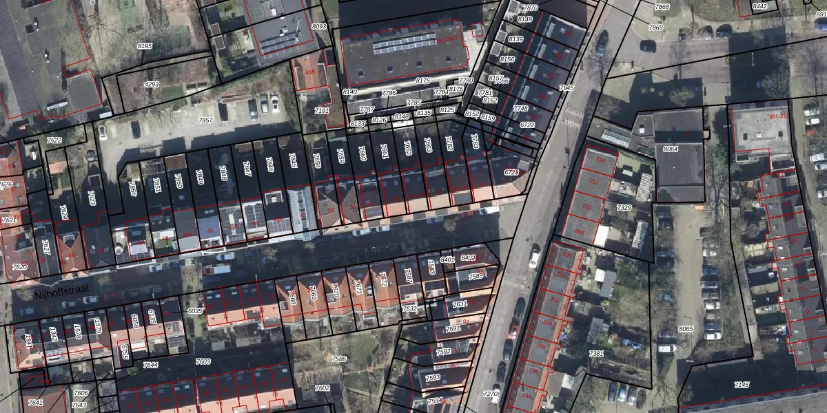 Het perceel waarop Nijhoffstraat 22 staat heeft een oppervlakte van 113 m². Dit is een middelgroot perceel. De perceeloppervlakte wordt geregistreerd door het Kadaster. Gedetailleerde informatie over de maten van dit perceel kunt u vinden in het rapport Kadastrale kaart met maatvoering van Nijhoffstraat 22.