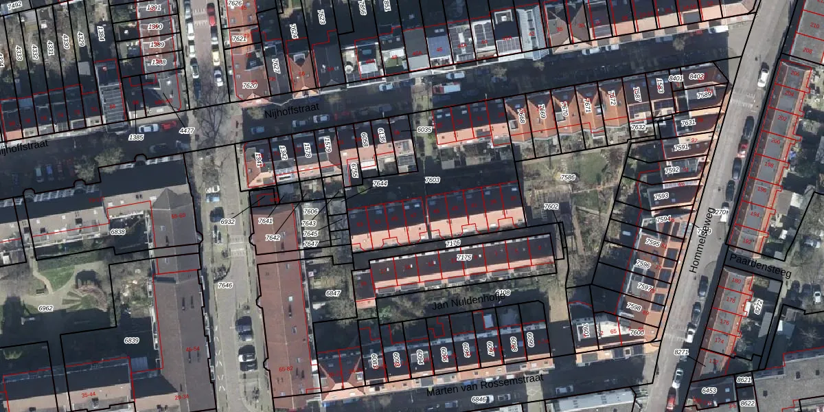 Het perceel waarop Nijhoffstraat 47 staat heeft een oppervlakte van 1087 m². Dit is een zeer groot perceel. De perceeloppervlakte wordt geregistreerd door het Kadaster. Gedetailleerde informatie over de maten van dit perceel kunt u vinden in het rapport Kadastrale kaart met maatvoering van Nijhoffstraat 47.