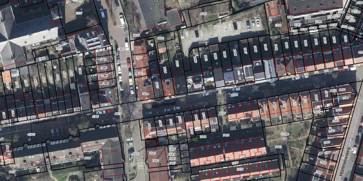 Het perceel waarop Nijhoffstraat 54 staat heeft een oppervlakte van 234 m². Dit is een middelgroot perceel. De perceeloppervlakte wordt geregistreerd door het Kadaster. Gedetailleerde informatie over de maten van dit perceel kunt u vinden in het rapport Kadastrale kaart met maatvoering van Nijhoffstraat 54.