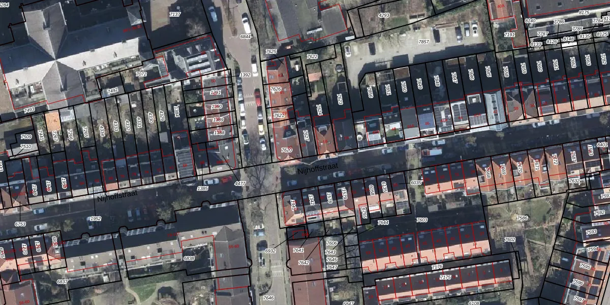 Het perceel waarop Nijhoffstraat 58 staat heeft een oppervlakte van 103 m². Dit is een middelgroot perceel. De perceeloppervlakte wordt geregistreerd door het Kadaster. Gedetailleerde informatie over de maten van dit perceel kunt u vinden in het rapport Kadastrale kaart met maatvoering van Nijhoffstraat 58.