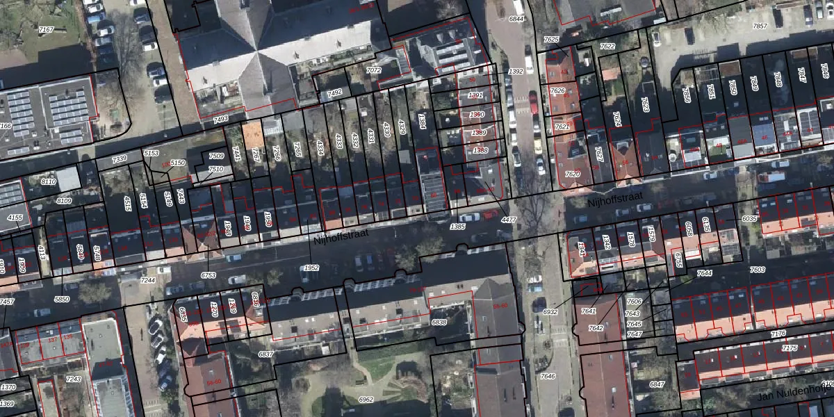 Het perceel waarop Nijhoffstraat 70 staat heeft een oppervlakte van 121 m². Dit is een middelgroot perceel. De perceeloppervlakte wordt geregistreerd door het Kadaster. Gedetailleerde informatie over de maten van dit perceel kunt u vinden in het rapport Kadastrale kaart met maatvoering van Nijhoffstraat 70.
