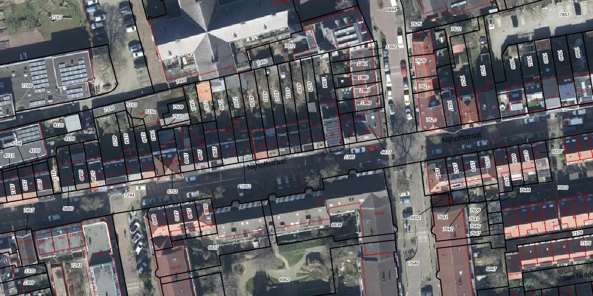 Het perceel waarop Nijhoffstraat 74 staat heeft een oppervlakte van 123 m². Dit is een middelgroot perceel. De perceeloppervlakte wordt geregistreerd door het Kadaster. Gedetailleerde informatie over de maten van dit perceel kunt u vinden in het rapport Kadastrale kaart met maatvoering van Nijhoffstraat 74.