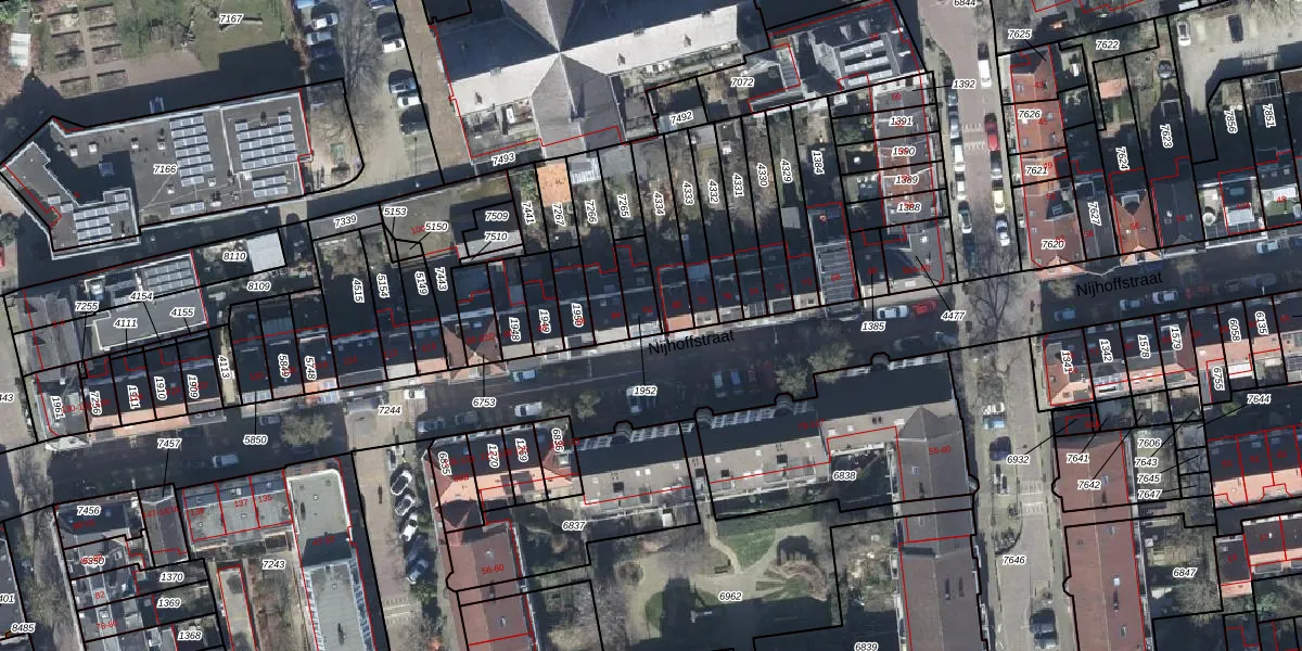 Het perceel waarop Nijhoffstraat 82 staat heeft een oppervlakte van 75 m². Dit is een klein perceel. De perceeloppervlakte wordt geregistreerd door het Kadaster. Gedetailleerde informatie over de maten van dit perceel kunt u vinden in het rapport Kadastrale kaart met maatvoering van Nijhoffstraat 82.