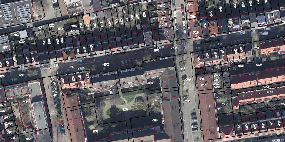 Het perceel waarop Nijhoffstraat 85 staat heeft een oppervlakte van 765 m². Dit is een groot perceel. De perceeloppervlakte wordt geregistreerd door het Kadaster. Gedetailleerde informatie over de maten van dit perceel kunt u vinden in het rapport Kadastrale kaart met maatvoering van Nijhoffstraat 85.