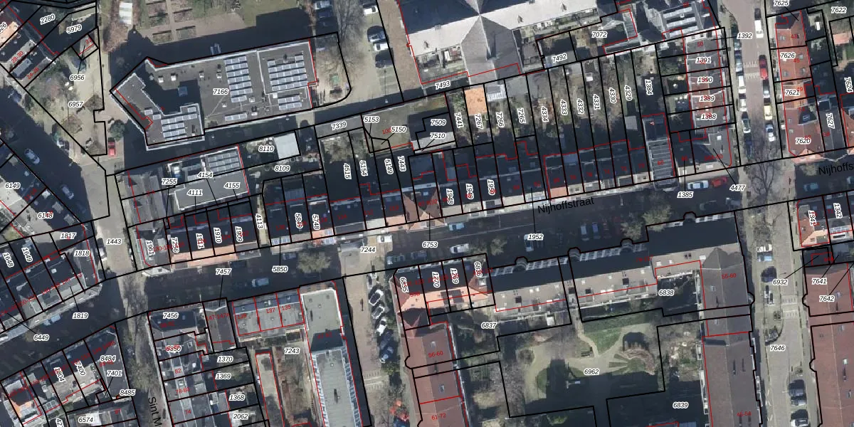 Het perceel waarop Nijhoffstraat 92 staat heeft een oppervlakte van 86 m². Dit is een klein perceel. De perceeloppervlakte wordt geregistreerd door het Kadaster. Gedetailleerde informatie over de maten van dit perceel kunt u vinden in het rapport Kadastrale kaart met maatvoering van Nijhoffstraat 92.