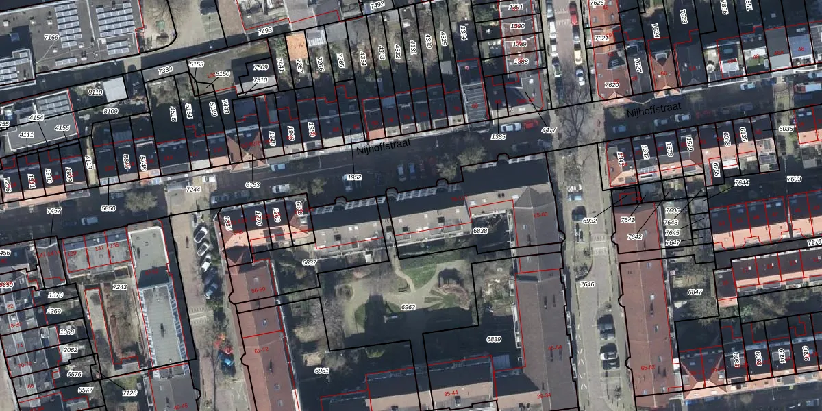 Het perceel waarop Nijhoffstraat 95 staat heeft een oppervlakte van 765 m². Dit is een groot perceel. De perceeloppervlakte wordt geregistreerd door het Kadaster. Gedetailleerde informatie over de maten van dit perceel kunt u vinden in het rapport Kadastrale kaart met maatvoering van Nijhoffstraat 95.