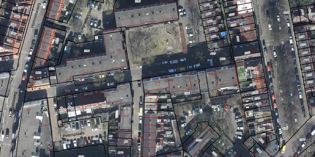 Het perceel waarop Noord-Peterstraat 42 staat heeft een oppervlakte van 535 m². Dit is een groot perceel. De perceeloppervlakte wordt geregistreerd door het Kadaster. Gedetailleerde informatie over de maten van dit perceel kunt u vinden in het rapport Kadastrale kaart met maatvoering van Noord-Peterstraat 42.