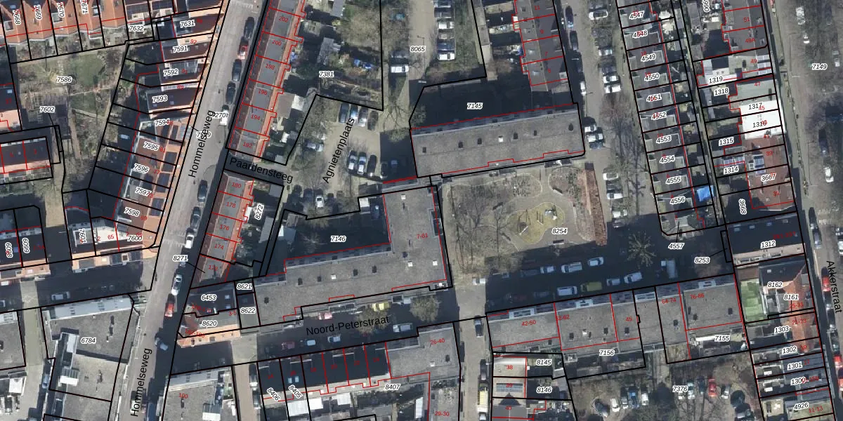 Het perceel waarop Noord-Peterstraat 43 staat heeft een oppervlakte van 980 m². Dit is een groot perceel. De perceeloppervlakte wordt geregistreerd door het Kadaster. Gedetailleerde informatie over de maten van dit perceel kunt u vinden in het rapport Kadastrale kaart met maatvoering van Noord-Peterstraat 43.