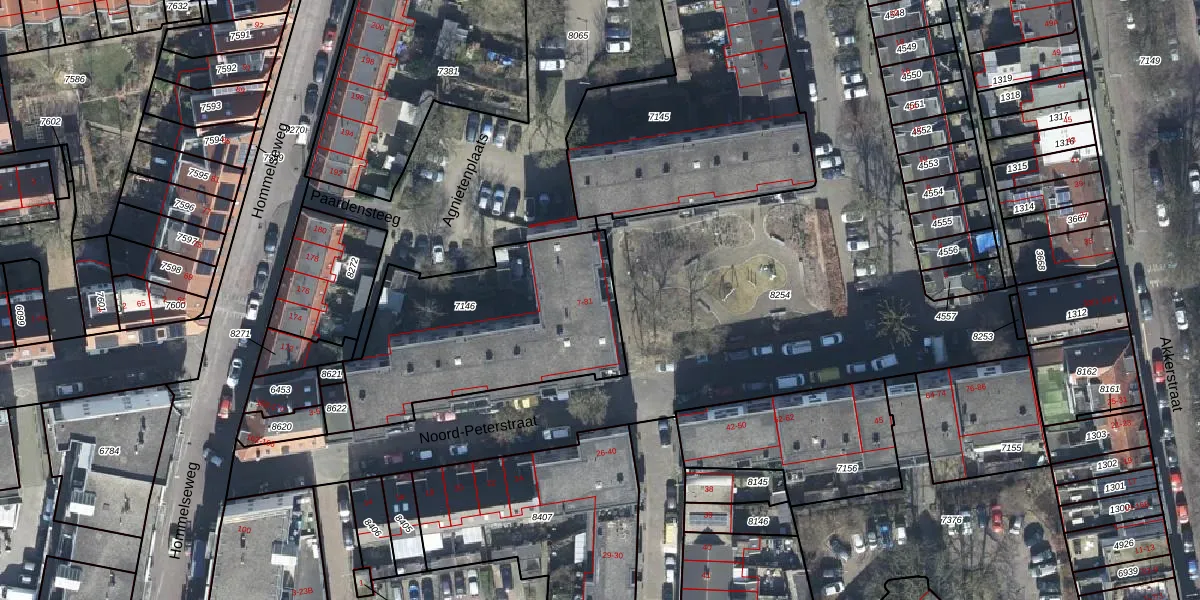 Het perceel waarop Noord-Peterstraat 45 staat heeft een oppervlakte van 980 m². Dit is een groot perceel. De perceeloppervlakte wordt geregistreerd door het Kadaster. Gedetailleerde informatie over de maten van dit perceel kunt u vinden in het rapport Kadastrale kaart met maatvoering van Noord-Peterstraat 45.