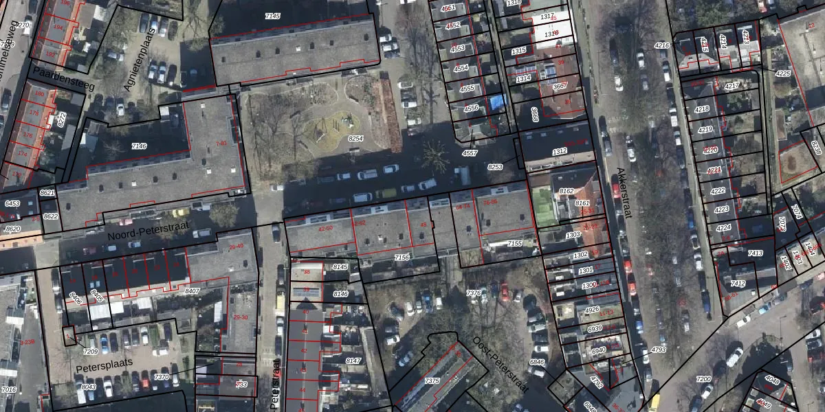 Het perceel waarop Noord-Peterstraat 64 staat heeft een oppervlakte van 535 m². Dit is een groot perceel. De perceeloppervlakte wordt geregistreerd door het Kadaster. Gedetailleerde informatie over de maten van dit perceel kunt u vinden in het rapport Kadastrale kaart met maatvoering van Noord-Peterstraat 64.