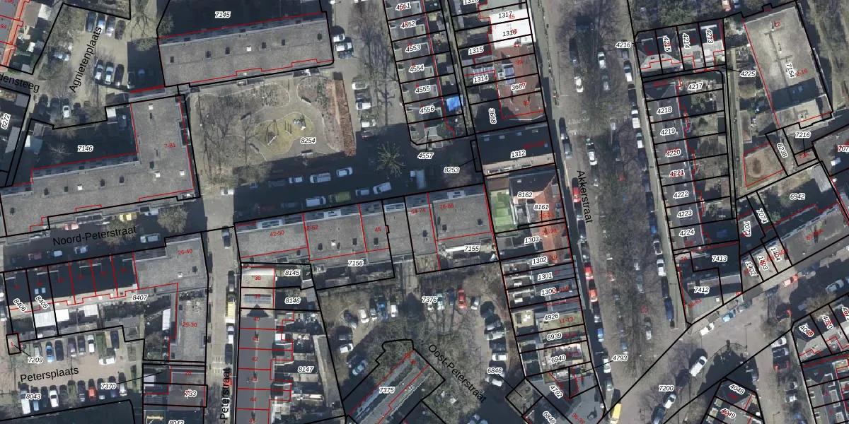 Het perceel waarop Noord-Peterstraat 74 staat heeft een oppervlakte van 345 m². Dit is een groot perceel. De perceeloppervlakte wordt geregistreerd door het Kadaster. Gedetailleerde informatie over de maten van dit perceel kunt u vinden in het rapport Kadastrale kaart met maatvoering van Noord-Peterstraat 74.