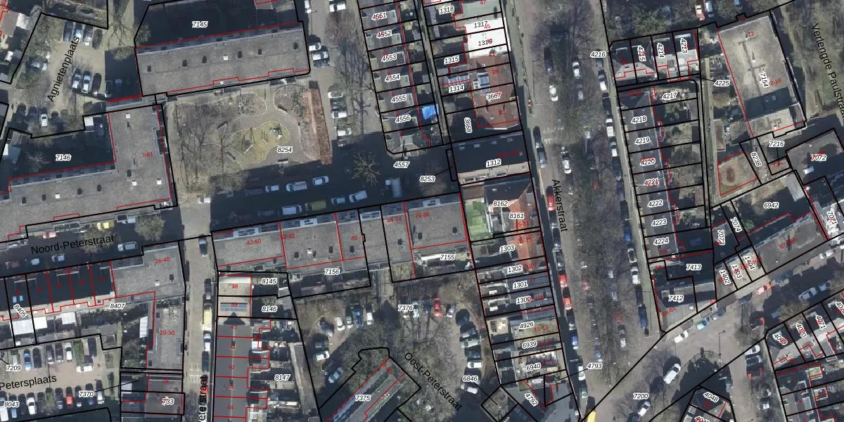 Het perceel waarop Noord-Peterstraat 80 staat heeft een oppervlakte van 345 m². Dit is een groot perceel. De perceeloppervlakte wordt geregistreerd door het Kadaster. Gedetailleerde informatie over de maten van dit perceel kunt u vinden in het rapport Kadastrale kaart met maatvoering van Noord-Peterstraat 80.