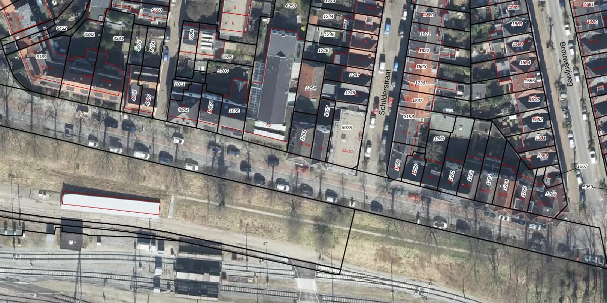 Het adres is gelegen op perceel 1253 in de sectie P en de kadastrale gemeente Arnhem. De kadastrale aanduiding is aldus AHM01-P-1253. Het perceel is kleiner dan gemiddeld in Arnhem. Het perceel is 110 m² groot, terwijl het gemiddelde ligt op 2519,97 m². De grootste perceeloppervlakte in de kadastrale gemeente is 1,57 km². De kleinste oppervlakte bedraagt 0 m². Er zijn 3 adressen aanwezig op het perceel. De laatste wijziging in het de Basisregistratie Kadaster (BRK) was op 28-01-2004.