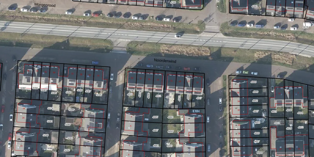 Het perceel waarop Noorderwind 23 staat heeft een oppervlakte van 175 m². Dit is een middelgroot perceel. De perceeloppervlakte wordt geregistreerd door het Kadaster. Gedetailleerde informatie over de maten van dit perceel kunt u vinden in het rapport Kadastrale kaart met maatvoering van Noorderwind 23.
