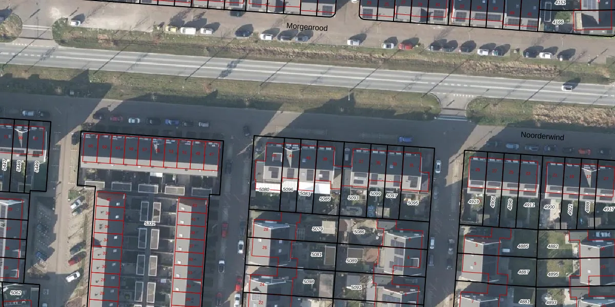 Noorderwind 41 is gelegen op kadastraal perceel AHM05AF5083. Deze kadastrale aanduiding is uniek en wordt gebruikt door het Kadaster om eigendomsrechten en andere zakelijke rechten vast te leggen. Het perceel maakt onderdeel uit van de kadastrale gemeente Arnhem.