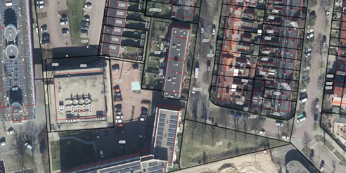 Het perceel waarop Novalaan 24-3 staat heeft een oppervlakte van 1209 m². Dit is een zeer groot perceel. De perceeloppervlakte wordt geregistreerd door het Kadaster. Gedetailleerde informatie over de maten van dit perceel kunt u vinden in het rapport Kadastrale kaart met maatvoering van Novalaan 24-3.