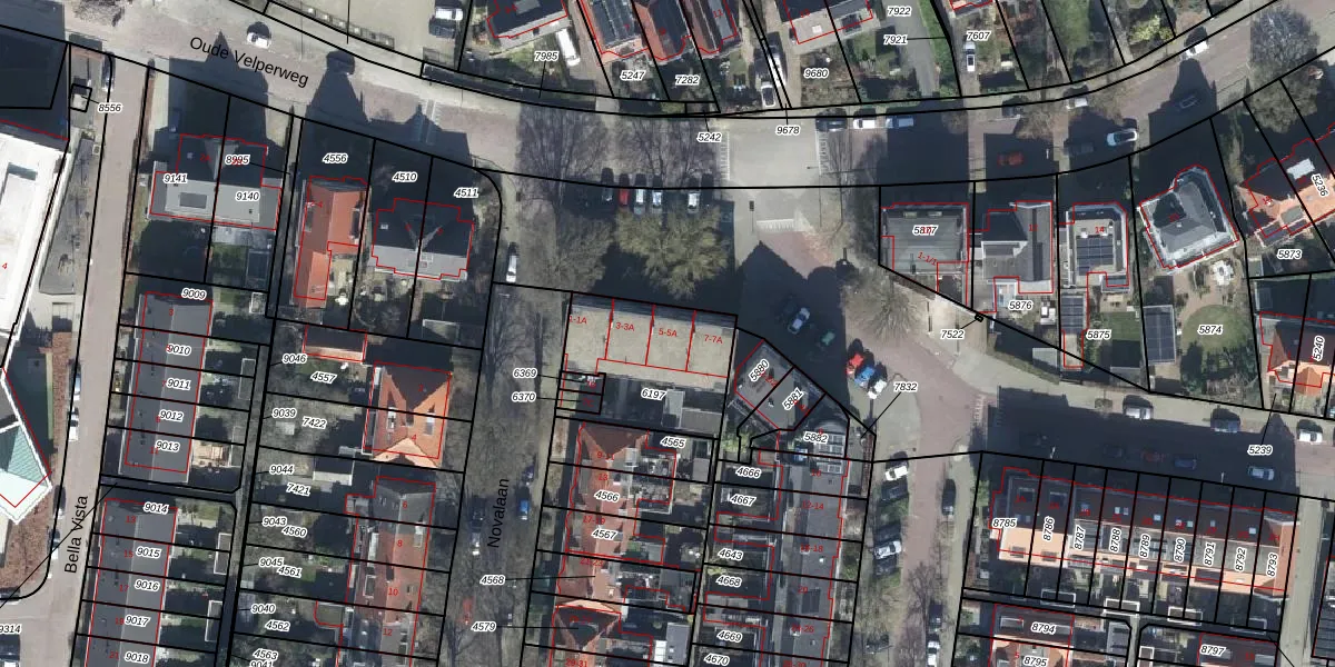 Novalaan 5-A is gelegen op kadastraal perceel AHM01Q6197. Deze kadastrale aanduiding is uniek en wordt gebruikt door het Kadaster om eigendomsrechten en andere zakelijke rechten vast te leggen. Het perceel maakt onderdeel uit van de kadastrale gemeente Arnhem.