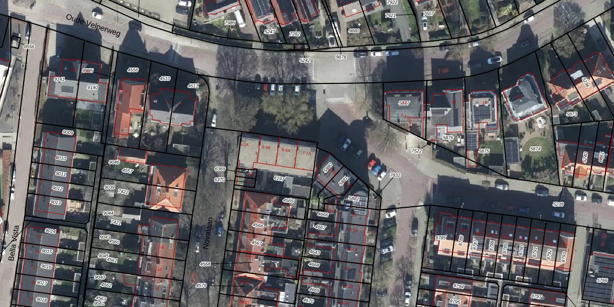 Het perceel waarop Novalaan 7-A staat heeft een oppervlakte van 428 m². Dit is een groot perceel. De perceeloppervlakte wordt geregistreerd door het Kadaster. Gedetailleerde informatie over de maten van dit perceel kunt u vinden in het rapport Kadastrale kaart met maatvoering van Novalaan 7-A.