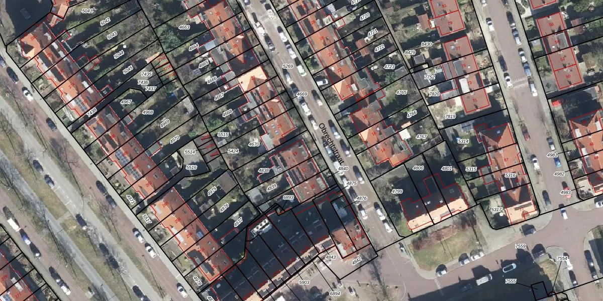 Het perceel waarop Obrechtstraat 19 staat heeft een oppervlakte van 231 m². Dit is een middelgroot perceel. De perceeloppervlakte wordt geregistreerd door het Kadaster. Gedetailleerde informatie over de maten van dit perceel kunt u vinden in het rapport Kadastrale kaart met maatvoering van Obrechtstraat 19.