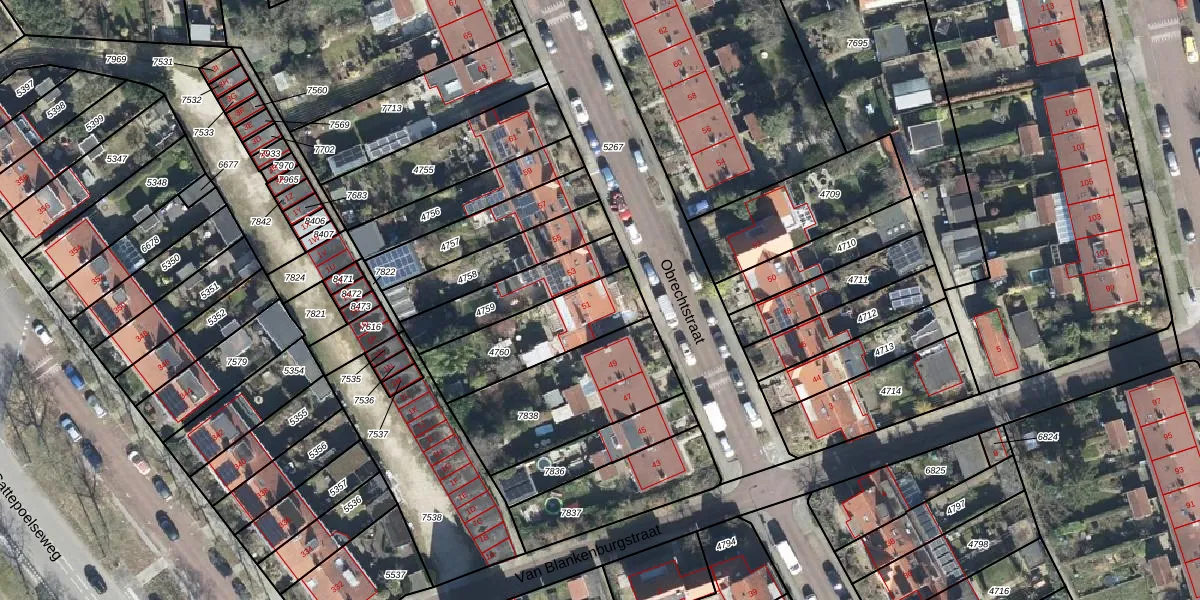 Het perceel waarop Obrechtstraat 51 staat heeft een oppervlakte van 352 m². Dit is een groot perceel. De perceeloppervlakte wordt geregistreerd door het Kadaster. Gedetailleerde informatie over de maten van dit perceel kunt u vinden in het rapport Kadastrale kaart met maatvoering van Obrechtstraat 51.