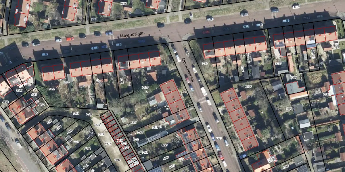 Het perceel waarop Obrechtstraat 69 staat heeft een oppervlakte van 1695 m². Dit is een zeer groot perceel. De perceeloppervlakte wordt geregistreerd door het Kadaster. Gedetailleerde informatie over de maten van dit perceel kunt u vinden in het rapport Kadastrale kaart met maatvoering van Obrechtstraat 69.