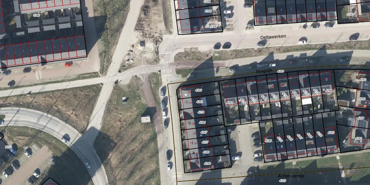 Gebruik de zoekbalk of klik op een perceel voor informatie over de adressen binnen dit perceel.