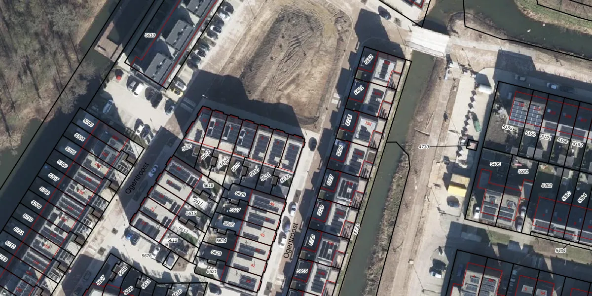 Het perceel waarop Ogentroost 1 staat heeft een oppervlakte van 123 m². Dit is een middelgroot perceel. De perceeloppervlakte wordt geregistreerd door het Kadaster. Gedetailleerde informatie over de maten van dit perceel kunt u vinden in het rapport Kadastrale kaart met maatvoering van Ogentroost 1.