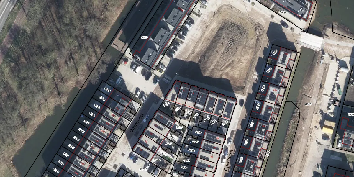 Het perceel waarop Ogentroost 13 staat heeft een oppervlakte van 119 m². Dit is een middelgroot perceel. De perceeloppervlakte wordt geregistreerd door het Kadaster. Gedetailleerde informatie over de maten van dit perceel kunt u vinden in het rapport Kadastrale kaart met maatvoering van Ogentroost 13.