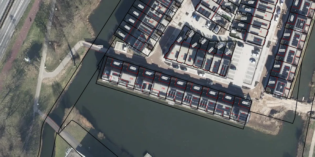 Het perceel waarop Ogentroost 130 staat heeft een oppervlakte van 156 m². Dit is een middelgroot perceel. De perceeloppervlakte wordt geregistreerd door het Kadaster. Gedetailleerde informatie over de maten van dit perceel kunt u vinden in het rapport Kadastrale kaart met maatvoering van Ogentroost 130.