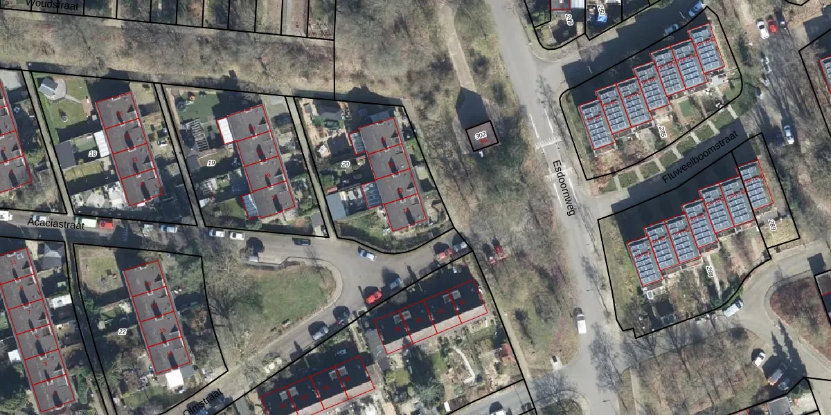 Het perceel waarop Olmstraat 21 staat heeft een oppervlakte van 930 m². Dit is een groot perceel. De perceeloppervlakte wordt geregistreerd door het Kadaster. Gedetailleerde informatie over de maten van dit perceel kunt u vinden in het rapport Kadastrale kaart met maatvoering van Olmstraat 21.