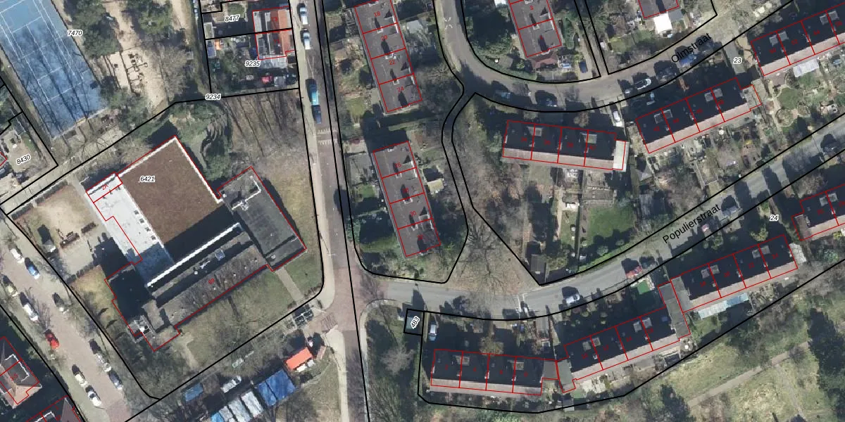 Het perceel waarop Olmstraat 30 staat heeft een oppervlakte van 3460 m². Dit is een zeer groot perceel. De perceeloppervlakte wordt geregistreerd door het Kadaster. Gedetailleerde informatie over de maten van dit perceel kunt u vinden in het rapport Kadastrale kaart met maatvoering van Olmstraat 30.