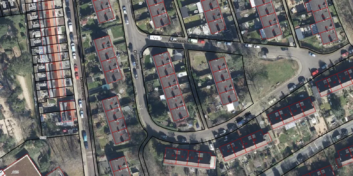 Het perceel waarop Olmstraat 5 staat heeft een oppervlakte van 1210 m². Dit is een zeer groot perceel. De perceeloppervlakte wordt geregistreerd door het Kadaster. Gedetailleerde informatie over de maten van dit perceel kunt u vinden in het rapport Kadastrale kaart met maatvoering van Olmstraat 5.
