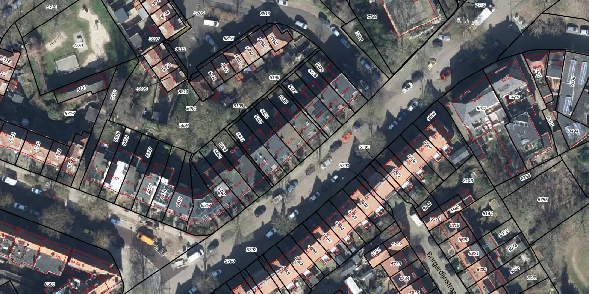 Het adres is gelegen op perceel 5424 in de sectie C en de kadastrale gemeente Arnhem. De kadastrale aanduiding is aldus AHM01-C-5424. De gemiddelde perceelgrootte in Arnhem is 2519,97 m². Dit perceel is kleiner: de perceeloppervlakte bedraagt 143 m². Het grootste perceel in de kadastrale gemeente is 1,57 km². Het kleinste perceel heeft een oppervlakte van 0 m². Op het perceel zijn 2 adressen aanwezig. De huidige grenzen van het perceel zijn digitaal in de Basisregistratie Kadaster (BRK) geregistreerd op 14-04-2003.