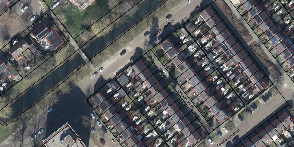 Gebruik de zoekbalk of klik op een perceel voor informatie over de adressen binnen dit perceel.