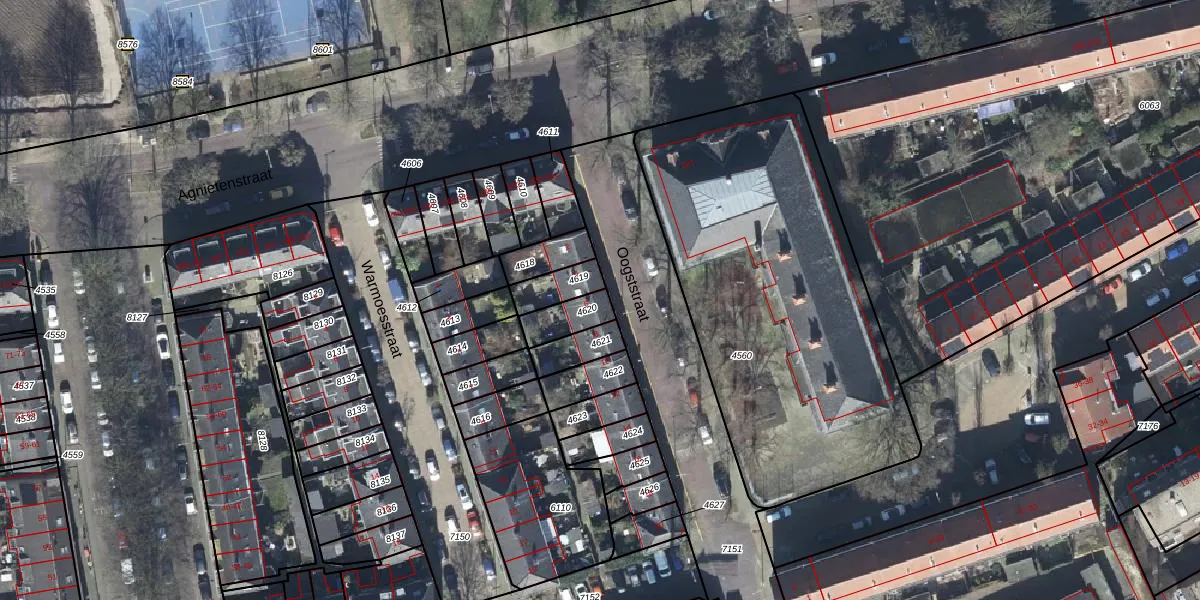 Het perceel waarop Oogststraat 6 staat heeft een oppervlakte van 82 m². Dit is een klein perceel. De perceeloppervlakte wordt geregistreerd door het Kadaster. Gedetailleerde informatie over de maten van dit perceel kunt u vinden in het rapport Kadastrale kaart met maatvoering van Oogststraat 6.