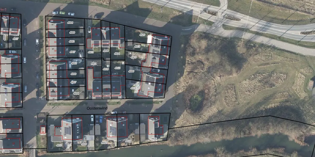 Het perceel waarop Oostenwind 10 staat heeft een oppervlakte van 245 m². Dit is een middelgroot perceel. De perceeloppervlakte wordt geregistreerd door het Kadaster. Gedetailleerde informatie over de maten van dit perceel kunt u vinden in het rapport Kadastrale kaart met maatvoering van Oostenwind 10.