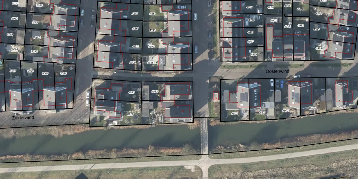 Gebruik de zoekbalk of klik op een perceel voor informatie over de adressen binnen dit perceel.
