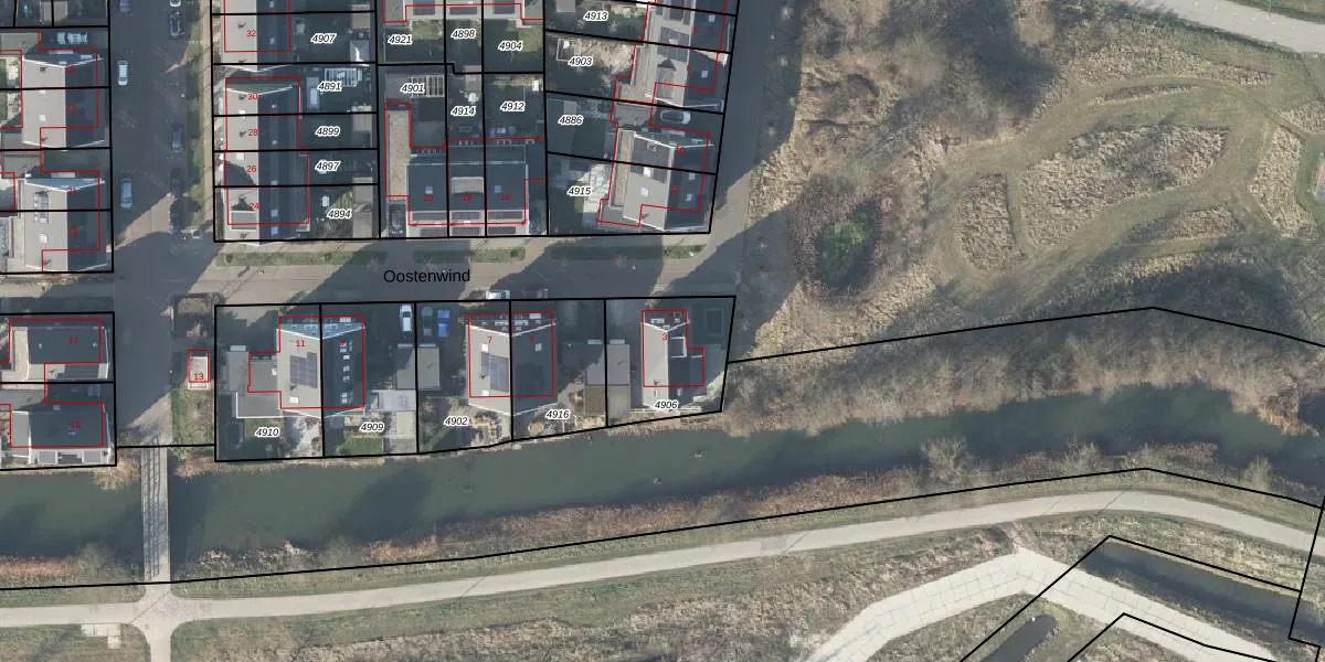 Het perceel waarop Oostenwind 3 staat heeft een oppervlakte van 337 m². Dit is een groot perceel. De perceeloppervlakte wordt geregistreerd door het Kadaster. Gedetailleerde informatie over de maten van dit perceel kunt u vinden in het rapport Kadastrale kaart met maatvoering van Oostenwind 3.