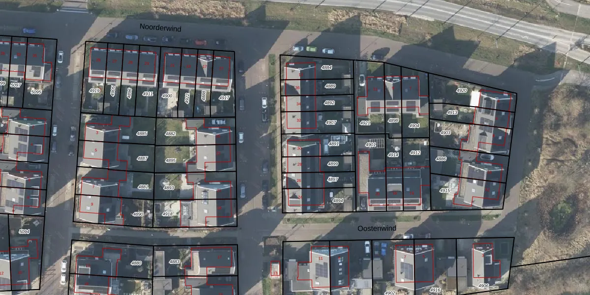 Het perceel waarop Oostenwind 30 staat heeft een oppervlakte van 191 m². Dit is een middelgroot perceel. De perceeloppervlakte wordt geregistreerd door het Kadaster. Gedetailleerde informatie over de maten van dit perceel kunt u vinden in het rapport Kadastrale kaart met maatvoering van Oostenwind 30.