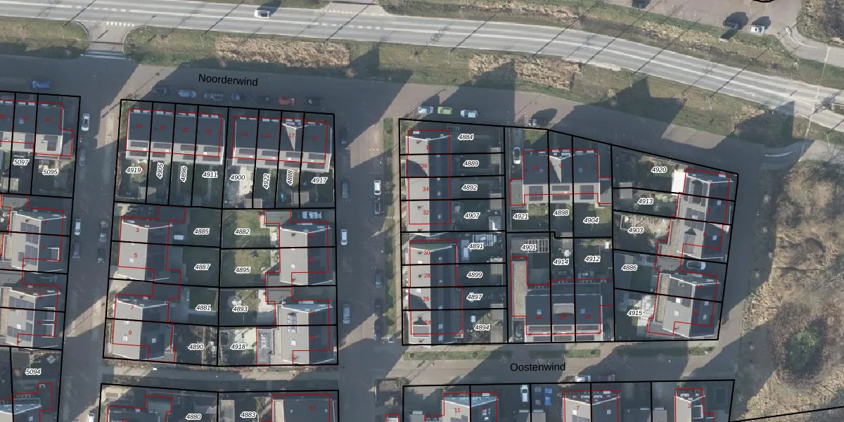 Het perceel waarop Oostenwind 32 staat heeft een oppervlakte van 189 m². Dit is een middelgroot perceel. De perceeloppervlakte wordt geregistreerd door het Kadaster. Gedetailleerde informatie over de maten van dit perceel kunt u vinden in het rapport Kadastrale kaart met maatvoering van Oostenwind 32.