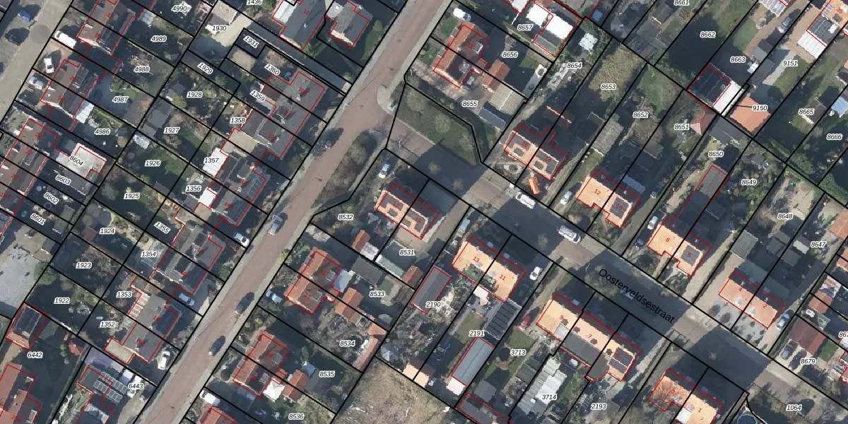 Het perceel waarop Oosterveldsestraat 15 staat heeft een oppervlakte van 282 m². Dit is een middelgroot perceel. De perceeloppervlakte wordt geregistreerd door het Kadaster. Gedetailleerde informatie over de maten van dit perceel kunt u vinden in het rapport Kadastrale kaart met maatvoering van Oosterveldsestraat 15.