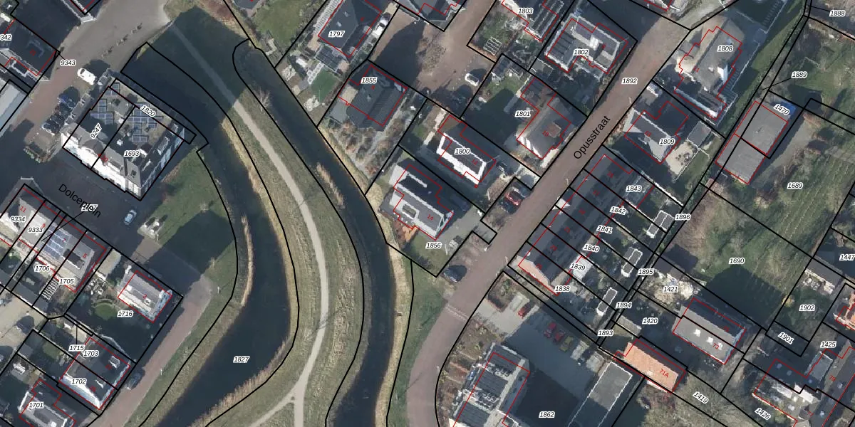 Het perceel waarop Opusstraat 14 staat heeft een oppervlakte van 478 m². Dit is een groot perceel. De perceeloppervlakte wordt geregistreerd door het Kadaster. Gedetailleerde informatie over de maten van dit perceel kunt u vinden in het rapport Kadastrale kaart met maatvoering van Opusstraat 14.