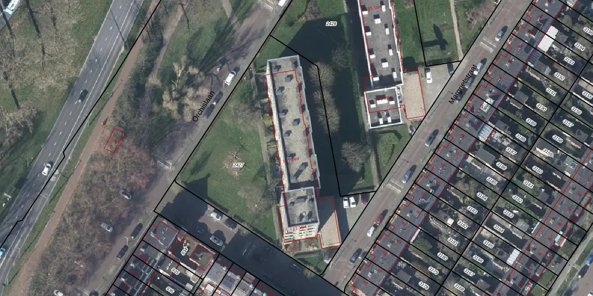 Het perceel waarop Orchislaan 22-4 staat heeft een oppervlakte van 2715 m². Dit is een zeer groot perceel. De perceeloppervlakte wordt geregistreerd door het Kadaster. Gedetailleerde informatie over de maten van dit perceel kunt u vinden in het rapport Kadastrale kaart met maatvoering van Orchislaan 22-4.